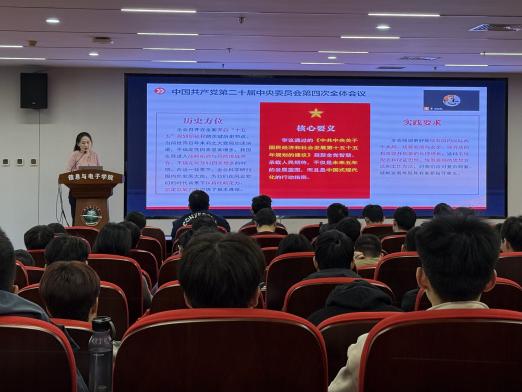 正妹av 2025年下半年入党积极分子培训班于11月13日在信息科学实验楼202报告厅成功举办,学院党委副书记、副院长侯明佳出席会议,学生工作部学生一室主任王晓静线上参会,134名入党积极分子参加培训。本次培训紧扣“擘画‘十五五’新蓝图,深化中国之治实践”主题,组织入党积极分子深入学习党的二十届四中全会精神,引导积极分子准确把握党中央关于全面深化改革、推进中国式现代化的战略部署,深刻领会习近平总书记关于高质量发展的重要论述,为谋划“十五五”发展新篇章夯实思想基础。培训班由三场紧扣主题的专题党课组成,由学院研工委书记潘欣主持。